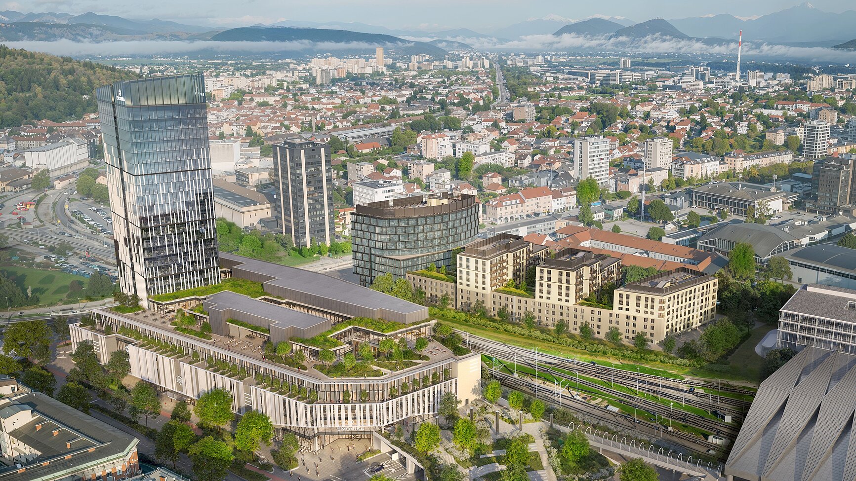 The site is directly adjacent to Ljubljana’s main railway station.